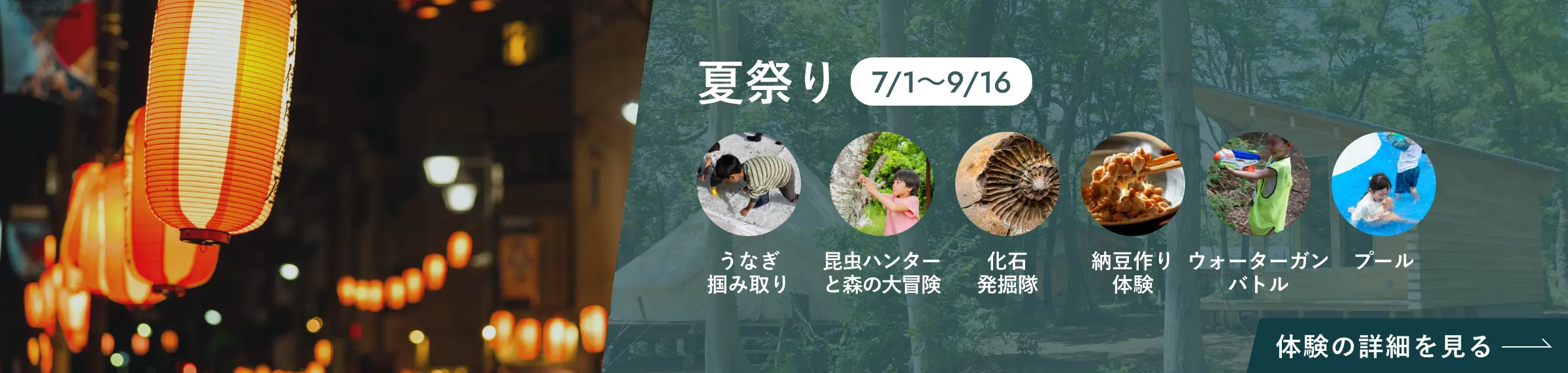 追加料金・事前予約不要!シーズンごとに変わる、毎日20種類以上の季節・文化・地域を感じられるアクティビティを開催。好きなものを選んで、つくばの大自然を活かした非日常を体験しよう!