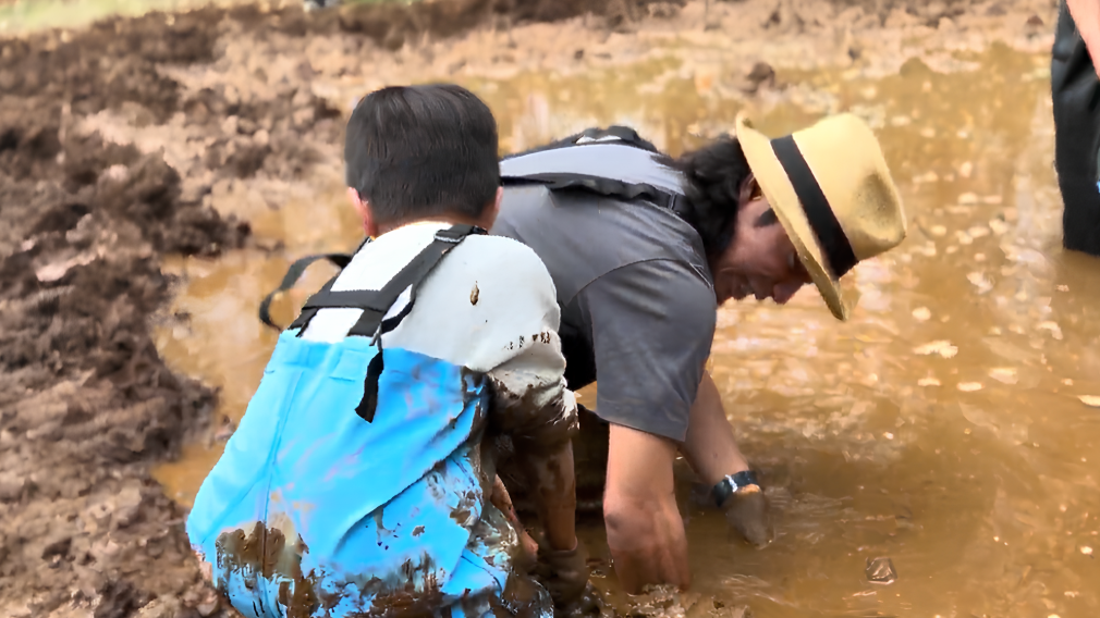 ぬかるみの中でずぼっと抜く瞬間が最高!泥まみれになりながら笑顔あふれる、自然の恵みを味わうワイルドな収穫体験!