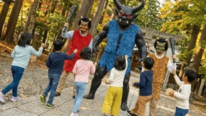 鬼に向かって全力で豆を投げる爽快感!節分ならではのイベントで、怖さと楽しさが混ざる体験です。