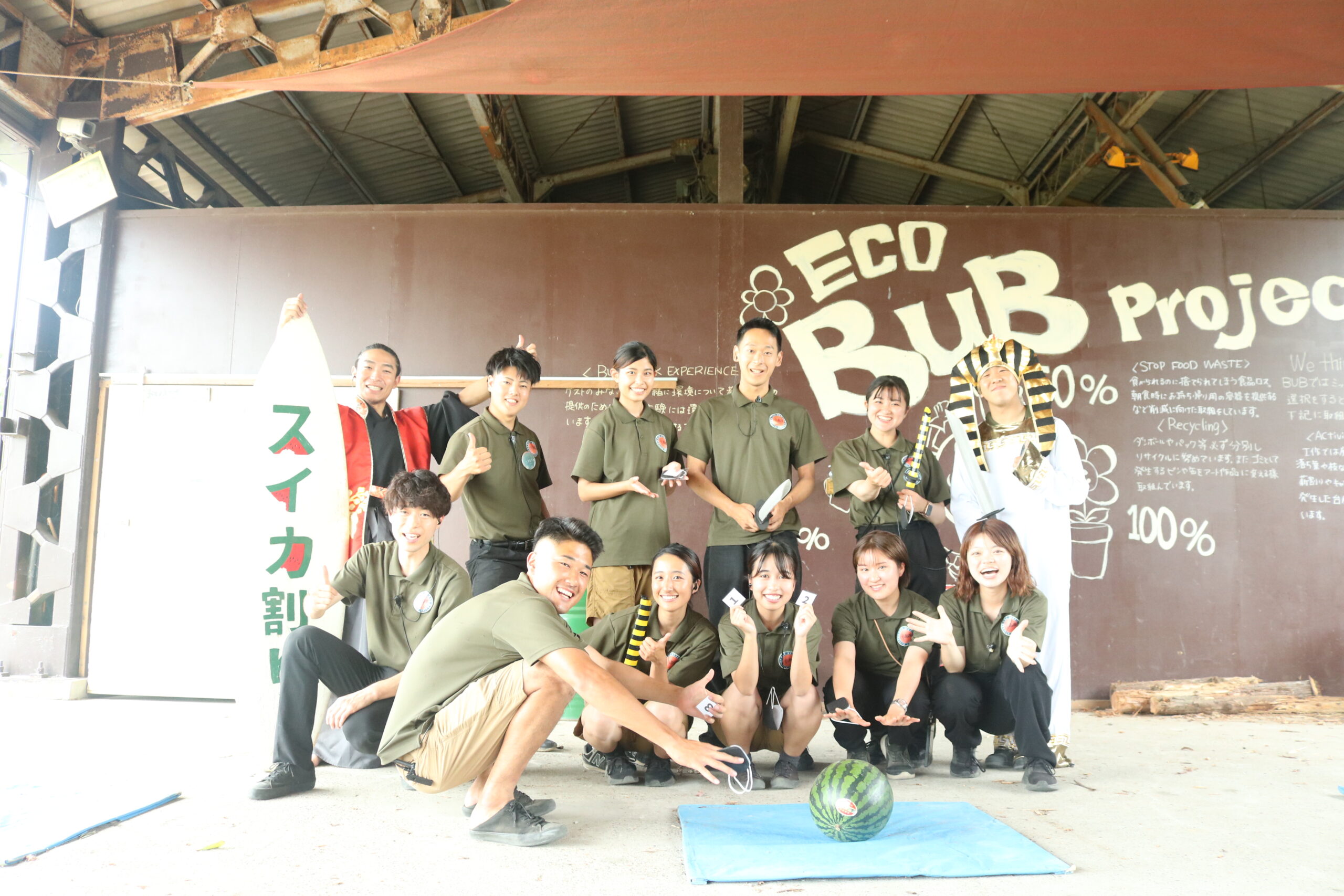 スイカを叩いた時の音や縞模様の違いを学び、一番甘くて美味しいスイカを見極める体験。