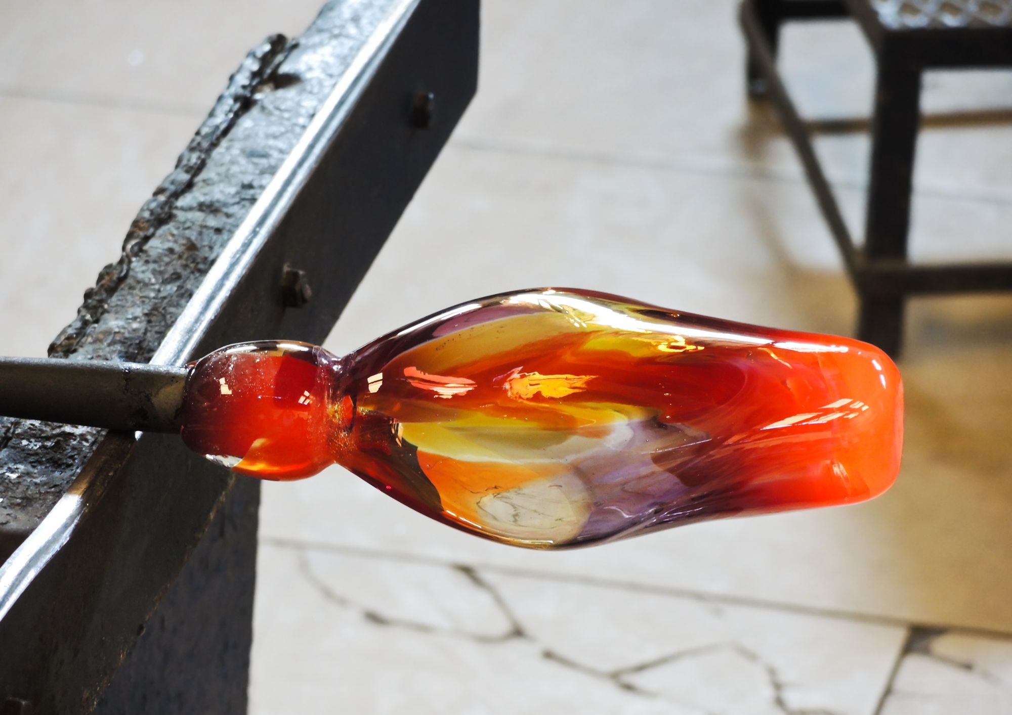 ドロドロのガラスに息を吹き込んで膨らませる本格的な職人体験