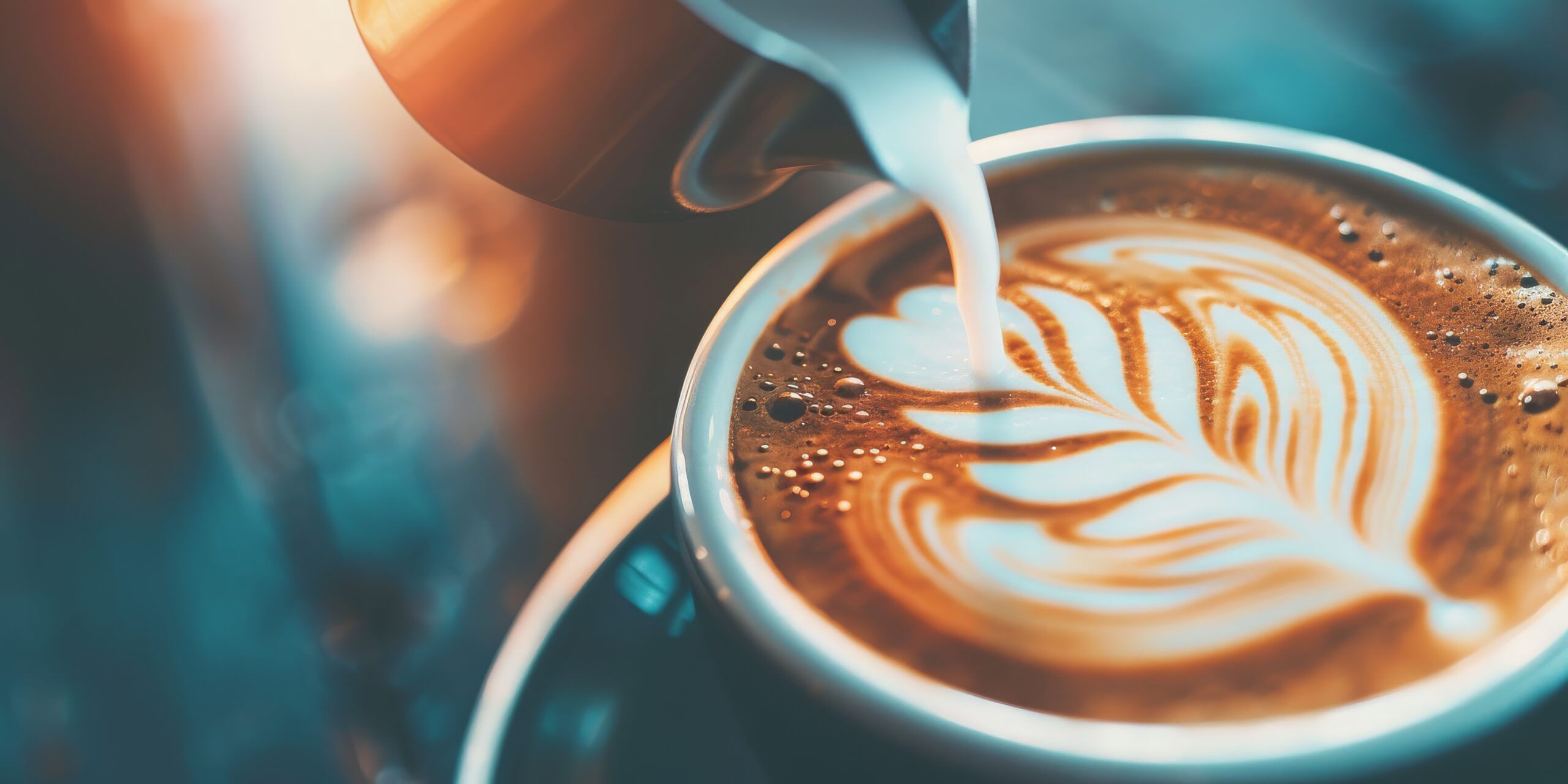 コーヒー豆の焙煎から抽出までの工程を学び、ミルクの泡で模様を描く本格的なラテを作る。