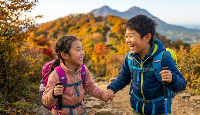 みんなで声を掛け合って山を登る!頂上に着いた時の達成感