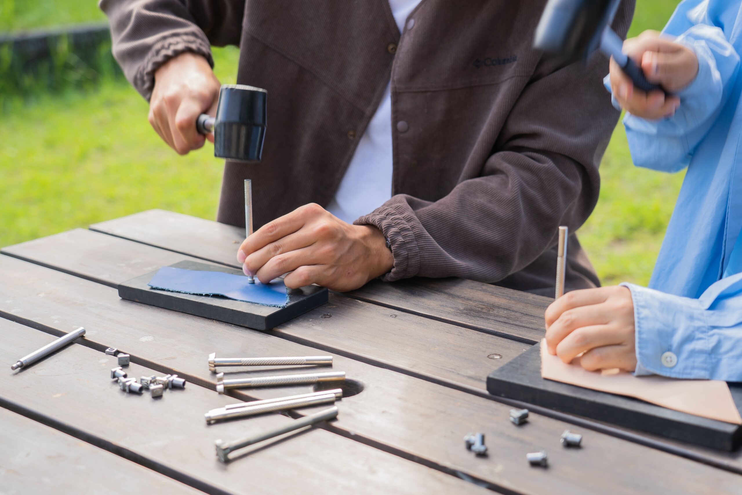 オリジナルのレザー作品を制作。革を磨くとツヤが出る変化に感動。職人気分で使える作品を作れます。