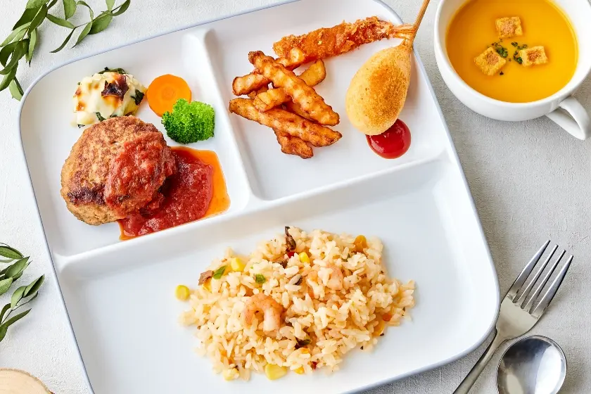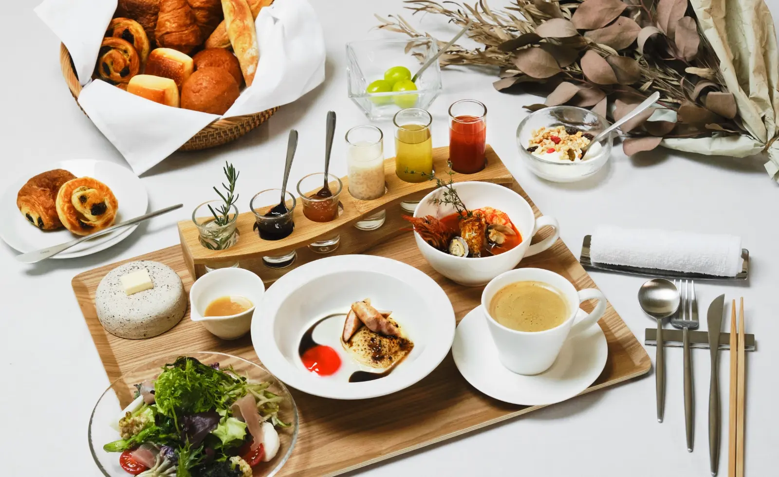 茨城県の魅力を感じられる朝食モーニングを季節に応じて提供いたします。 お子様はビュッフェスタイルで提供し、茨城県産常陸牛ハンバーグなどをご用意しております。