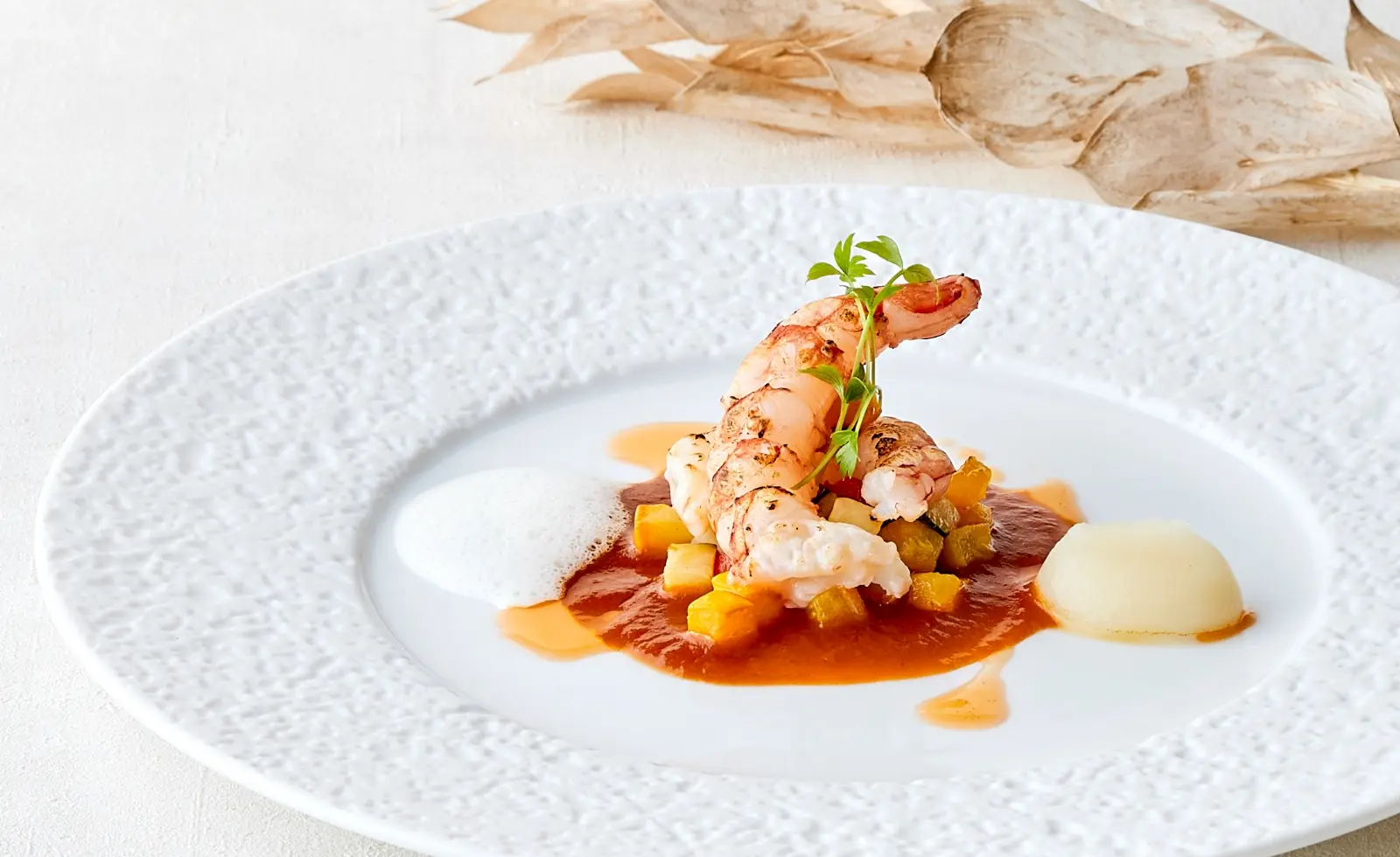フレンチダイニングシェフが厳選した高品質な食材と地元の旬の食材を贅沢に使用したフレンチ料理をご堪能ください。落ち着いた雰囲気の中で、特別な時間をお過ごしいただけます。料理の一部には、地元の伝統工芸である笠間焼のお皿を使用し、見た目にも美しい食体験をご提供します。